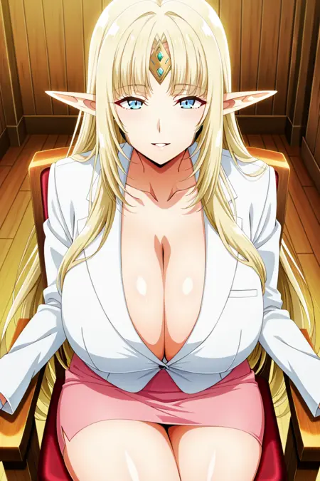 금발, 파란 눈, 긴 머리, 앞머리, 이마에 보석,