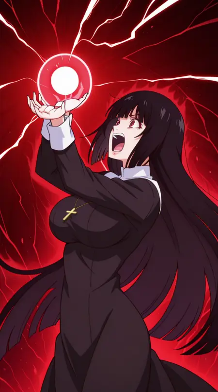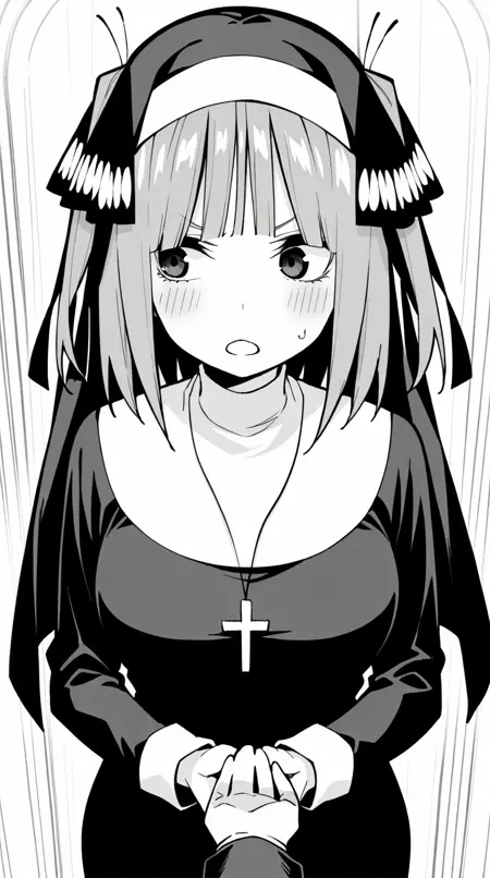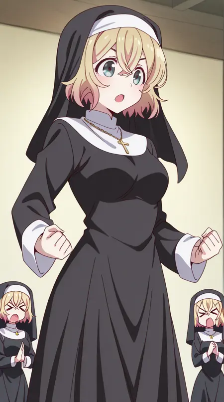 lora:traditional-nun-illustriousxl-lora-nochekaiser:1, 전통적인 수녀, 수녀, 복장, 긴 소매, 드레스, 검은 드레스, 보석, 검은 베일, 십자가, 십자가 목걸이,
