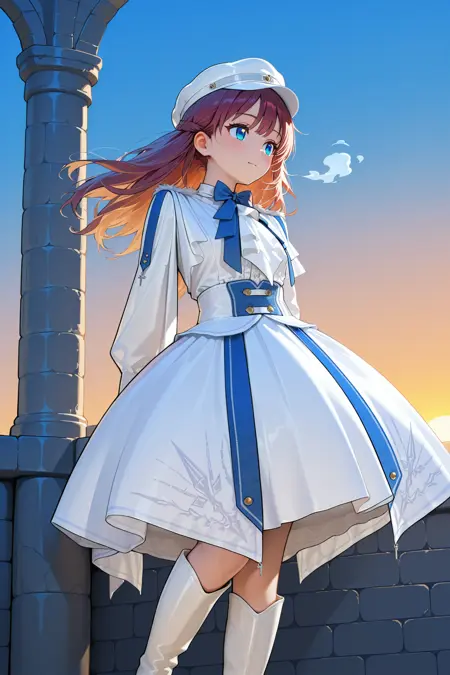 このLoRAは、白を基調とした洗練された軍服風ドレスを再現します。