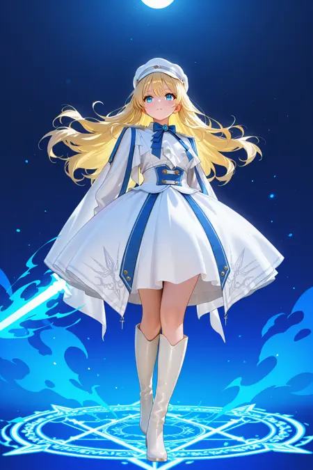 此LoRA重现了一款精致的白色军风礼服,配以优雅的蓝色点缀。