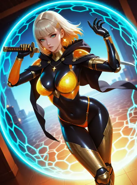 energy barrier , energy shiled,{glowing hexagon|at field}, transparent barrier, sparkling aura,