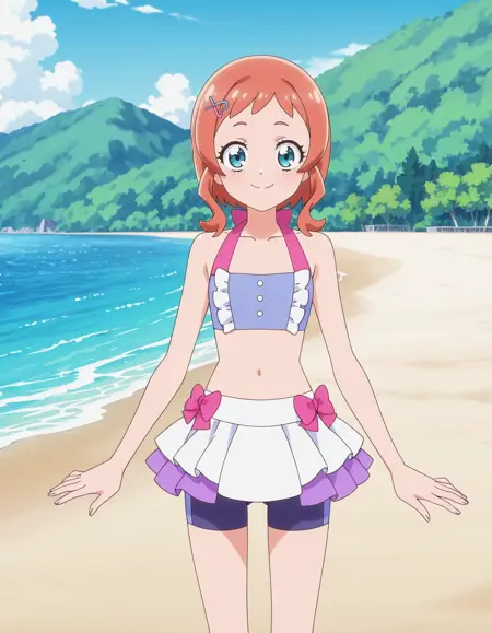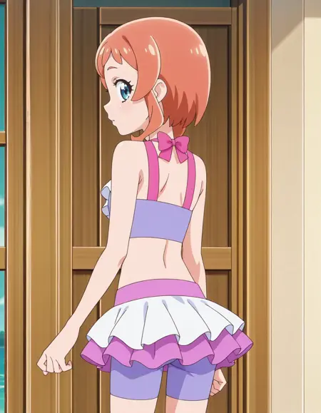 动漫截图,单人,1女孩,犬井伊织,irohaswimsuit,泳装,双层裙,自行车短裤,lora:inukaiiroha_IL:0.8,高清,极致画质,最佳质量,非常唯美,杰作,absurdres