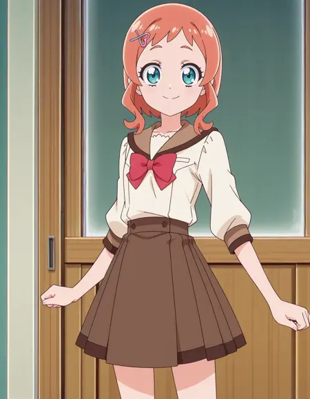 动漫截图,单人,1女孩,犬井伊织,irohawinterschool,校服,棕色衬衫,裙子,白色水手领,lora:inukaiiroha_IL:0.8,高清,极致画质,最佳质量,非常唯美,杰作,absurdres