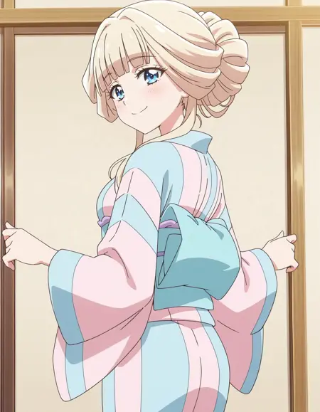 アニメスクリーンキャップ、単体、1人女の子、ねこやしきゆき、yukiyukata、着物、浴衣、帯、lora:nekoyashikiyuki_IL:0.8、高解像度、素晴らしい品質、最上品質、非常に美的、傑作、absurdres