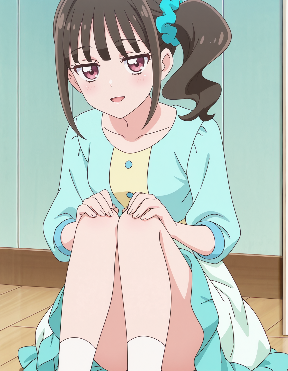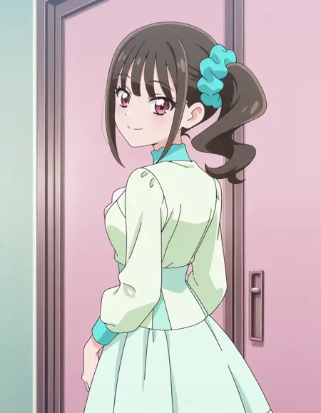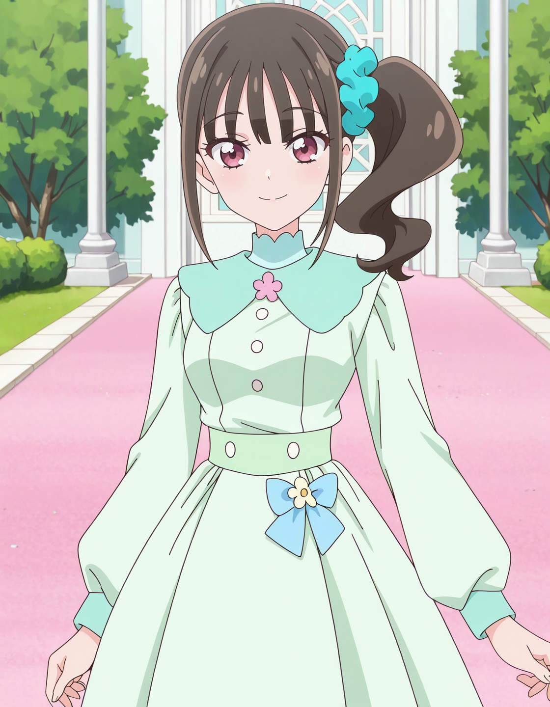 anime screencap,solo,1girl,nekoyashikiyukimayu,mayuwinter,green shirt,green skirt,dress,long sleeves,flower tie,lora:nekoyashikimayu\_IL:0.8, high definition,amazing quality,best quality,very aesthetic,masterpiece,absurdres