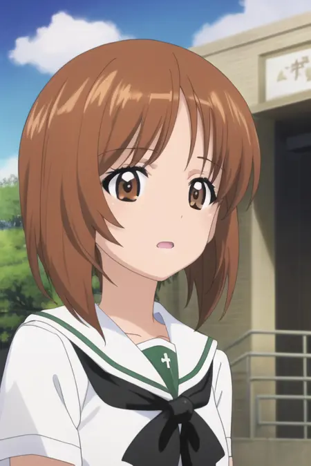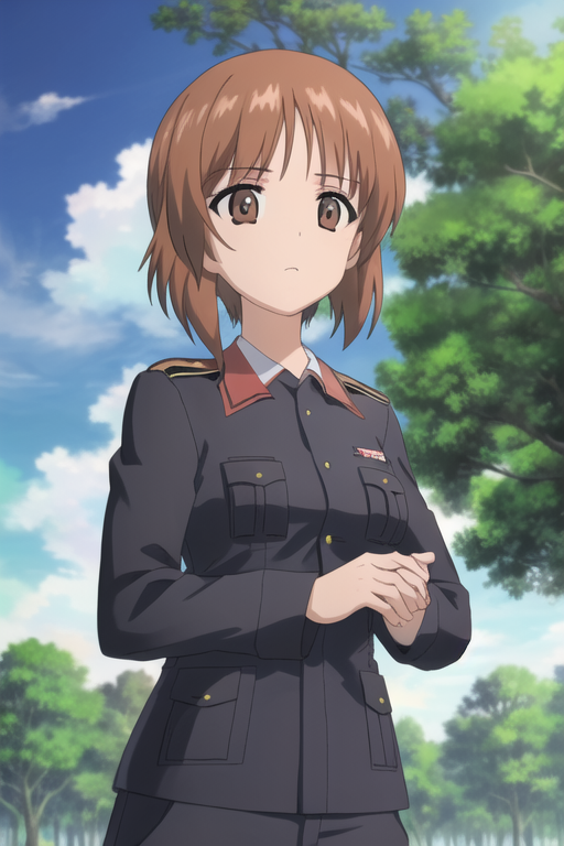 : nishizumi miho、ショートヘア、茶色の髪、茶色の目