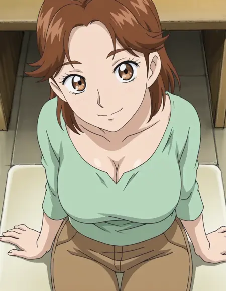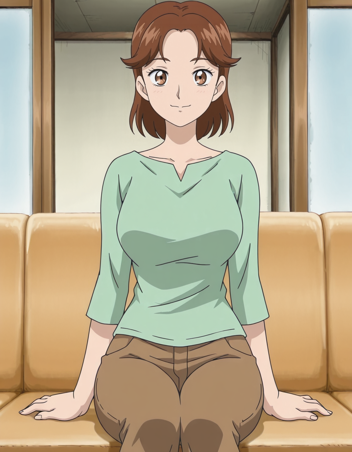 anime screencap, solo,1girl,natsukikazuyo,green shirt,pants,lora:natsukikazuyo_IL:0.8 high definition,amazing quality,best quality,very aesthetic,masterpiece,absurdres,