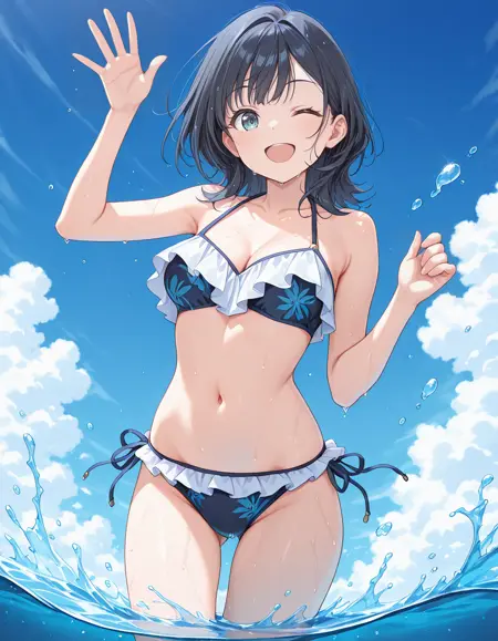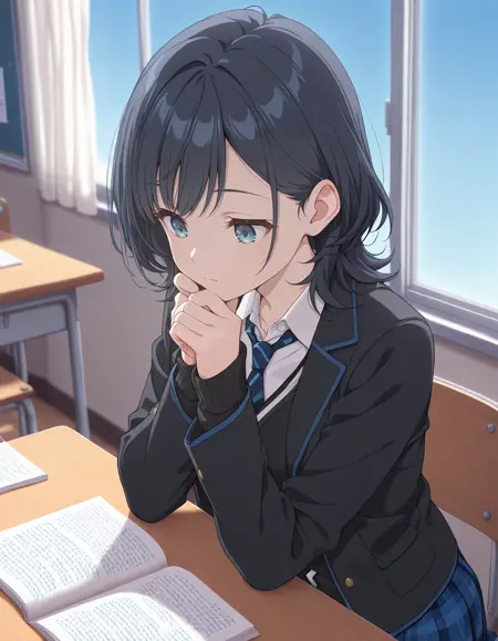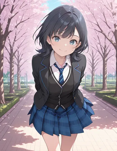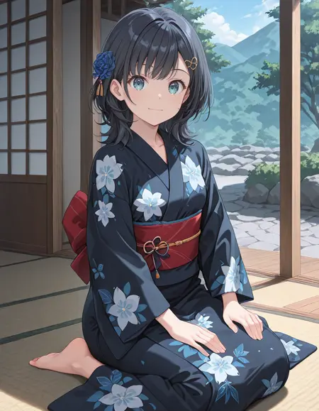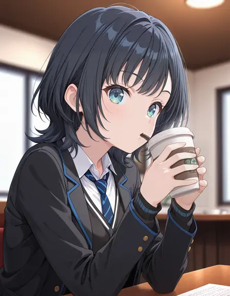 <lora:yuzuki_nanase-chiramune_s1-ixl-anime-soralz:1>, yuzuki nanase (chiramune), medium hair, black hair, blue eyes, green eyes