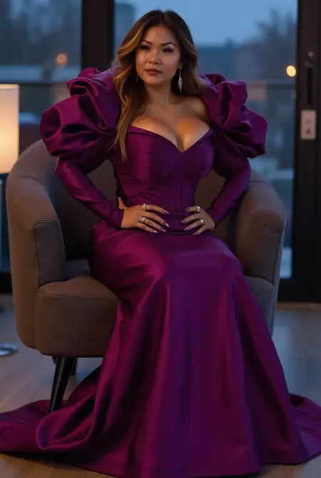 Bring the elegance of Foxxy Clothing’s signature Purple Satin Evening Gown to your AI creations! This LoRA is meticulously trained to capture every detail of the gown, from the lustrous satin fabric to the sculpted bodice and voluminous puff sleeves — all without including people, backgrounds, or distractions.