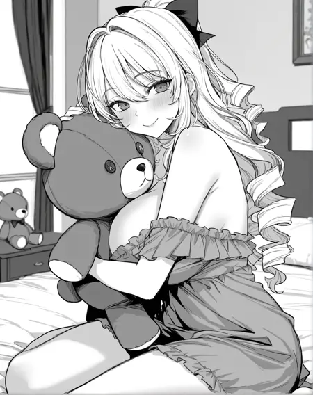 单色,灰度,aliciah,发带,长发,发饰,钻头发型,发花,呆毛,马尾辫