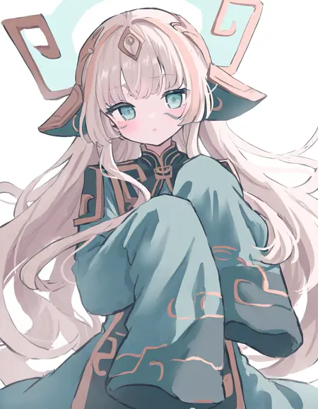 hair ornament,long sleeves,sleeves past wrists,facial mark,dress,