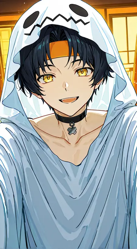触发词:万圣节服装、幽灵服装或日本服饰、三角形头饰