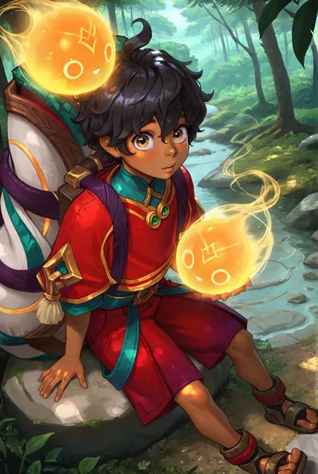 mili0, 深色皮肤, 棕色眼睛, ahoge, 黑发, 短发, 披肩, 短裤, 包, 背包, 凉鞋,