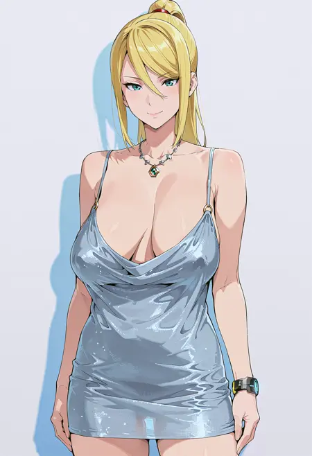 Creates a metal mesh mini slip dress. Use from 0.8 to 1.2 strength. Using lower strength decreases the texture of the dress, while increasing it will show it more, depending on checkpoint/LoRAs used. Dress will default to silver dress if no color is prompted.