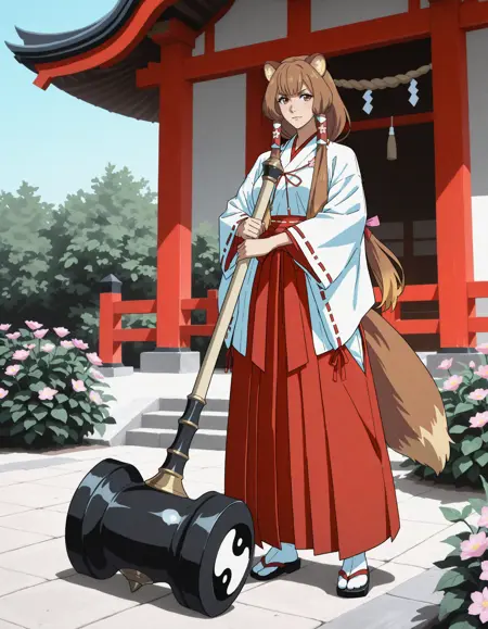 元皇帝/祖先の霊/ハンマー家臣の平和制圧者を学習したLoRA。彼女は『盾の勇者の成り上がり』シーズン4に登場する神官服を着用しており、ラプタリアに酷似している。最終エピソードでラプタリアと戦い、これから訪れる危険に備えるための準備を確認する。