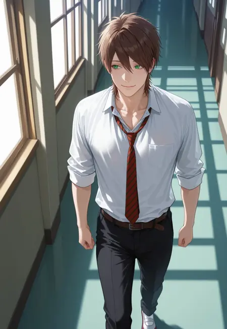 YBCTono, 1boy, brown hair, medium hair, hair between eyes, green eyes, colored eyelashes,