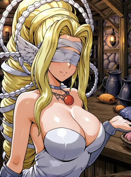 venusmon, 1girl, solo, blindfold,