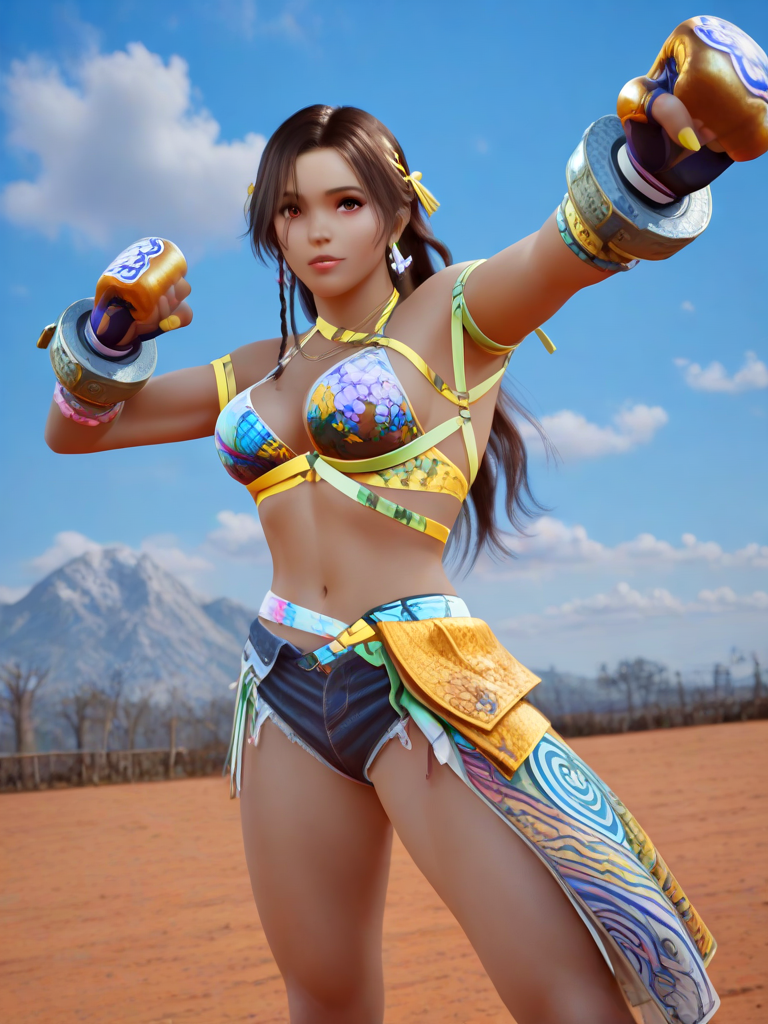 참고: 그녀의 얼굴을 더 성숙하게 표현하려면 "aged down, petite, cute,"를 삭제하세요. LoRA 가중치가 낮은 경우 "tan," 또는 "dark skin,"을 추가하세요.