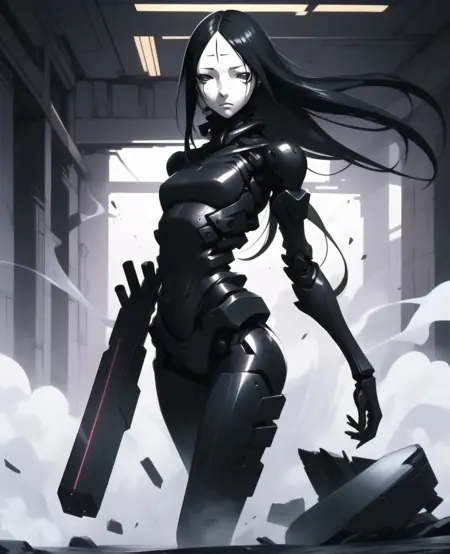 Original Sanakan(bald): 1girl, sanakan, original, tsutomu nihei, bald, exterminator, forehead mark, arm cannon, GBEAC