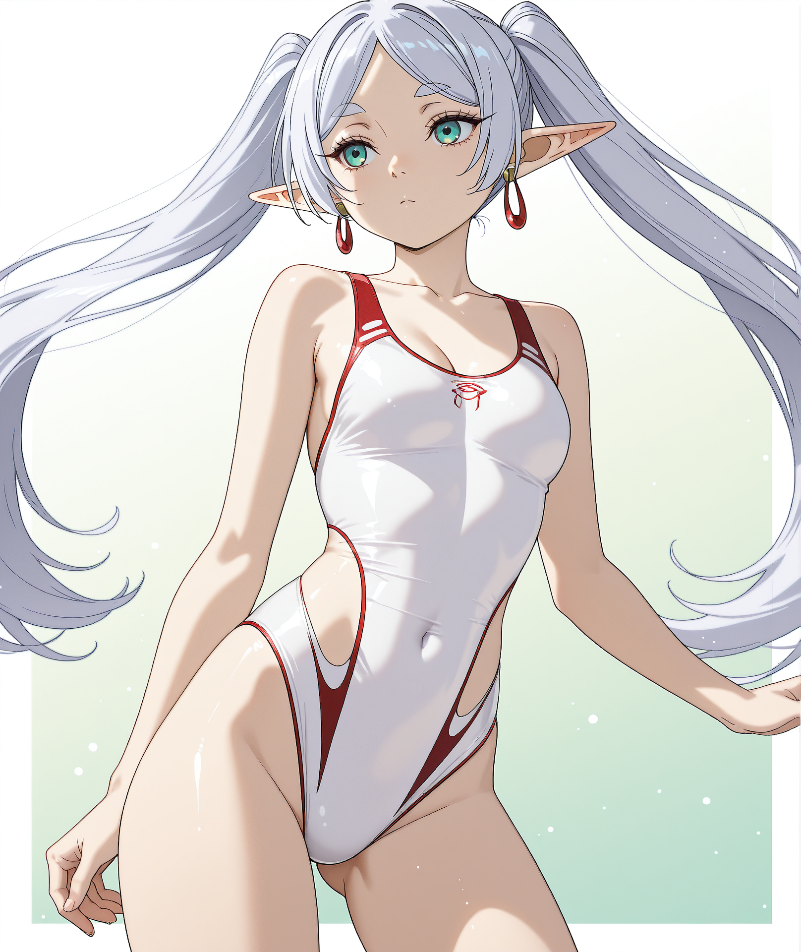 보석, 수영복, 원피스 수영복, 배꼽 커버, 경기용 수영복, 흰색 원피스 수영복, 하이레그 수영복,