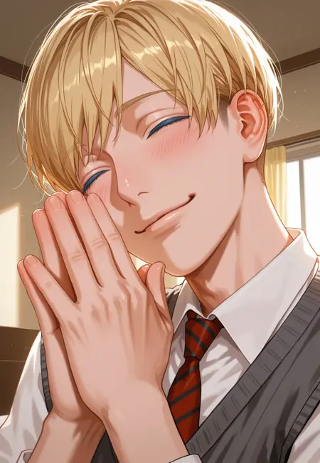 YBCAkemi, 1boy, blonde hair, short hair, undercut, blue eyes, colored eyelashes,