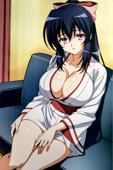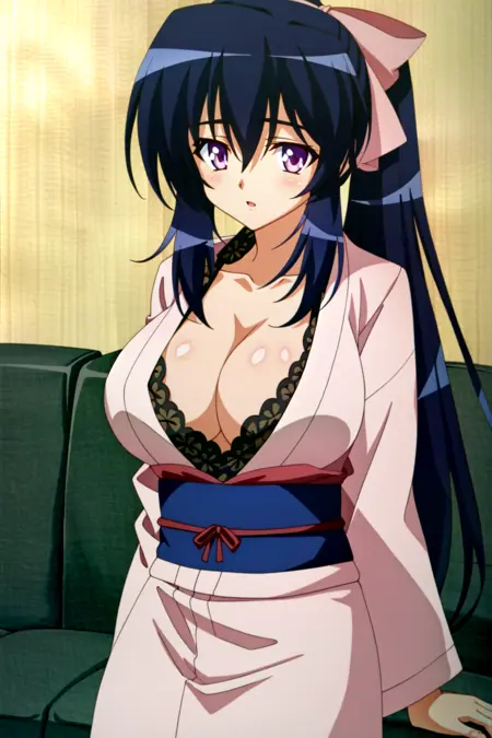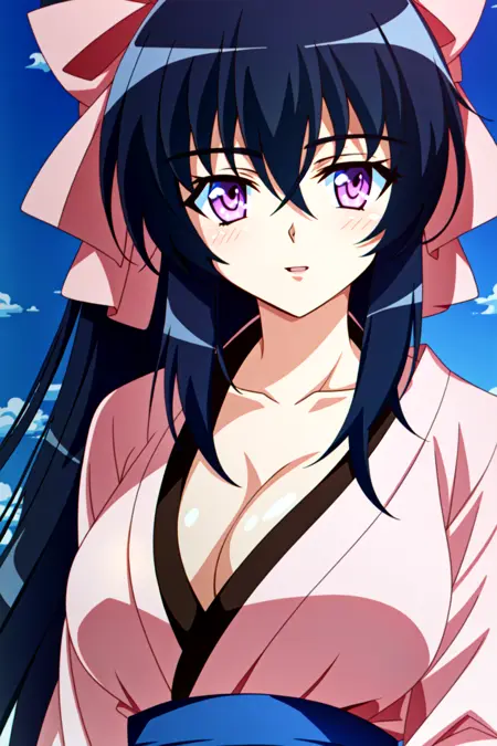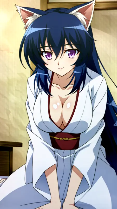 Himari Noihara、胸部、紫色眼睛、乳沟、项圈、黑发、长发、大乳房、和服、猫耳