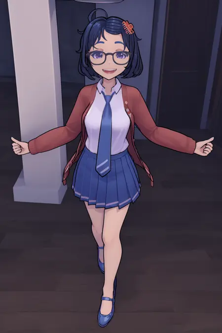 Miside, Mila, 빨간 머리클립, 안경, 밥 헤어,