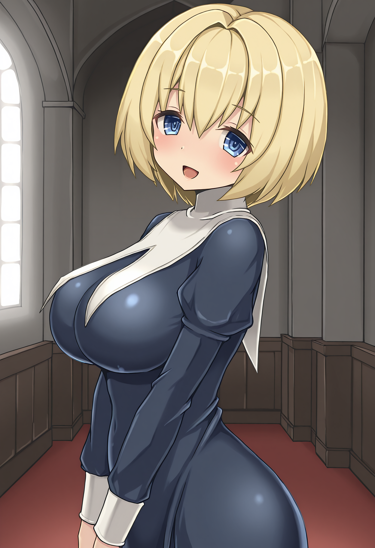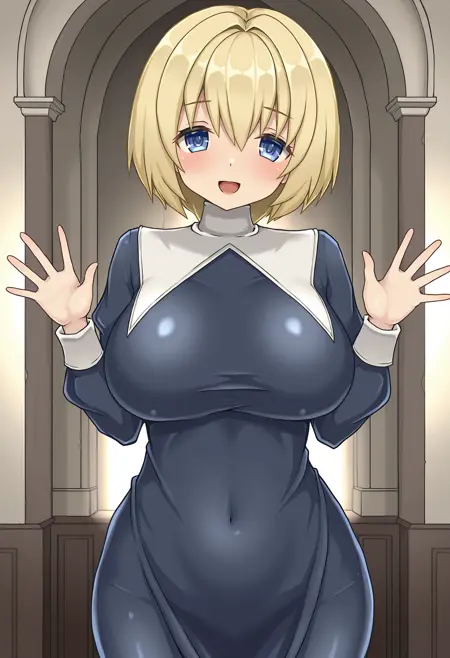 • haaruru, blonde hair, short hair, blue eyes, large breasts,