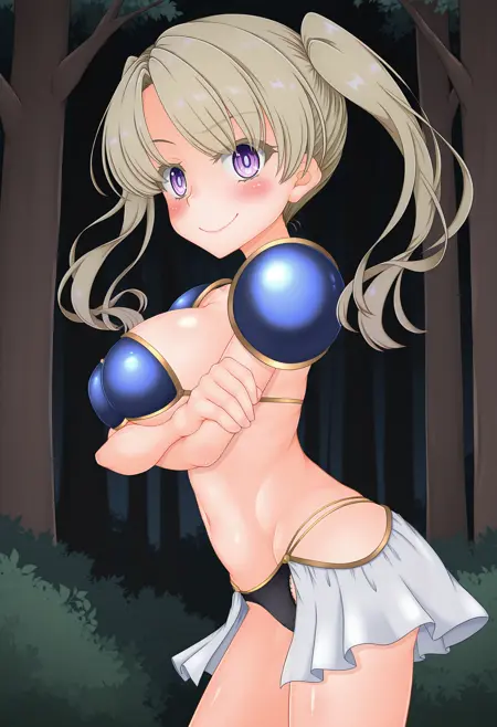 flnbros, ツインテール, 金髪, 紫色の目, 大きな胸, スタイルパロディ,