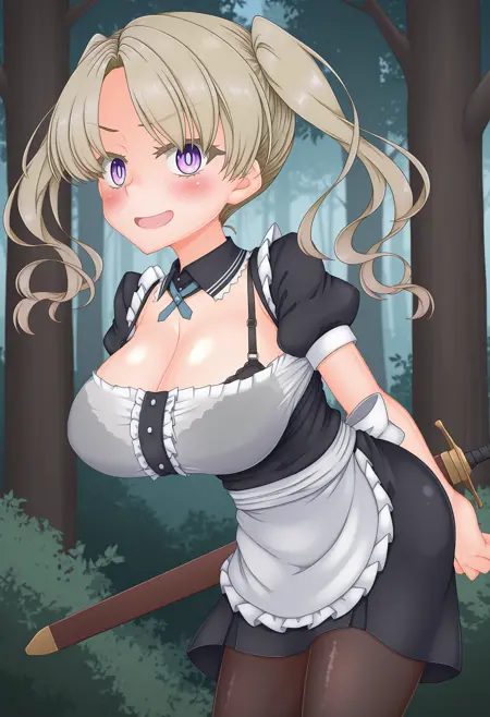 • flnbros, 双马尾, 金发, 紫眼, 大胸, 风格恶搞,