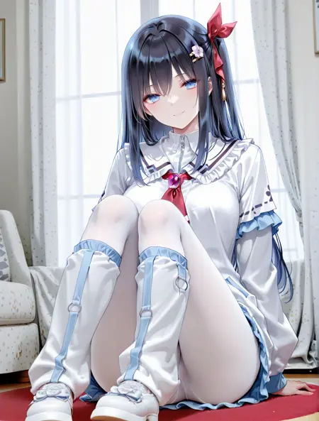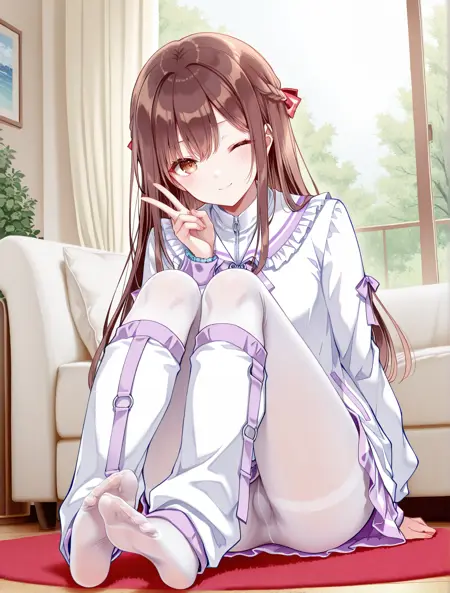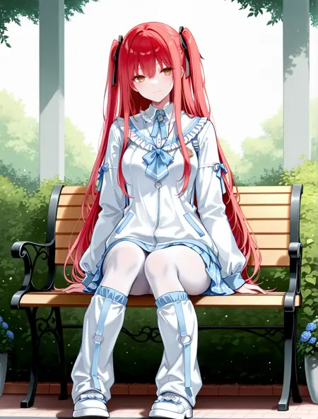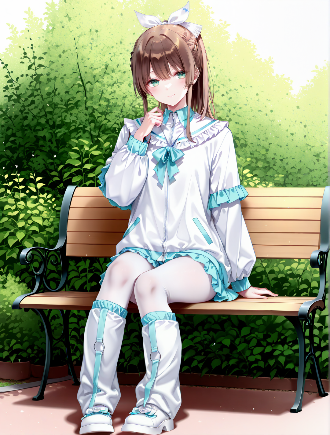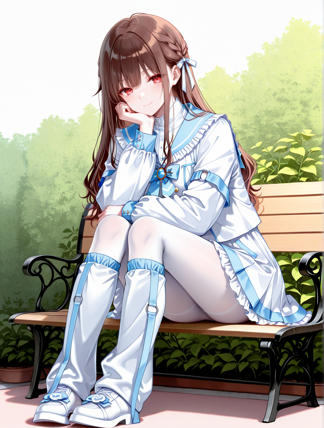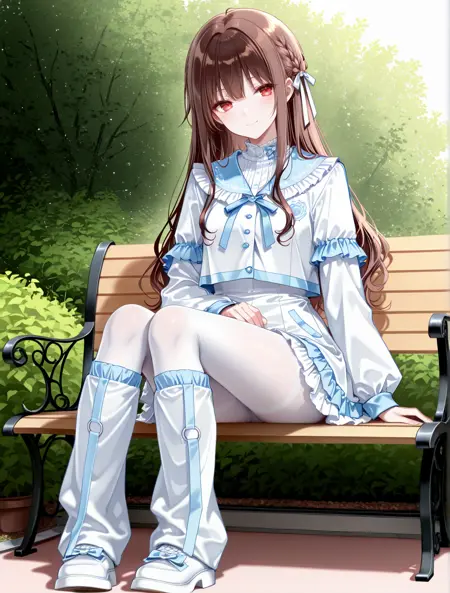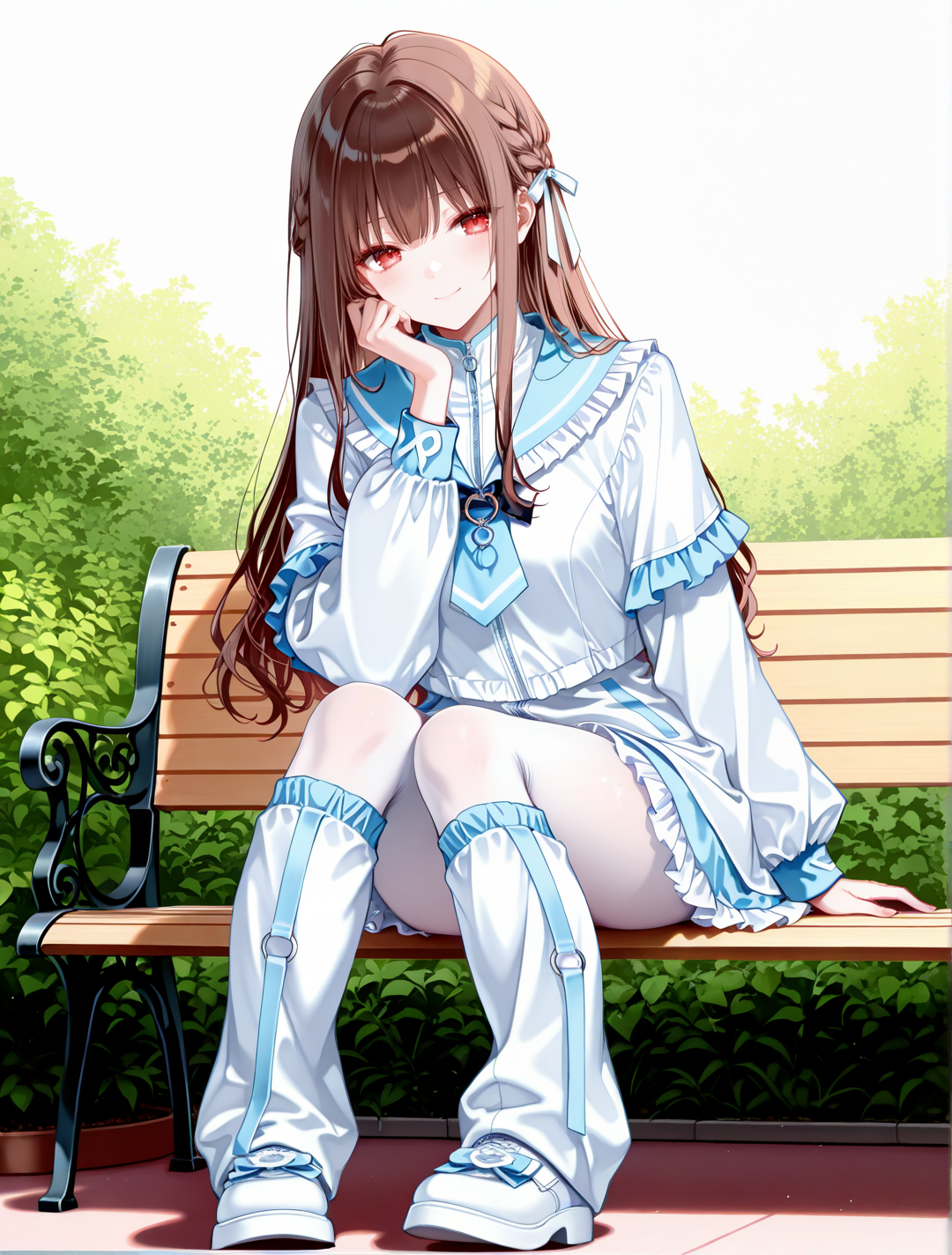 white jacket,zipper,leg warmers,frills,frilled sailor collar,white pantyhose,white footwear,