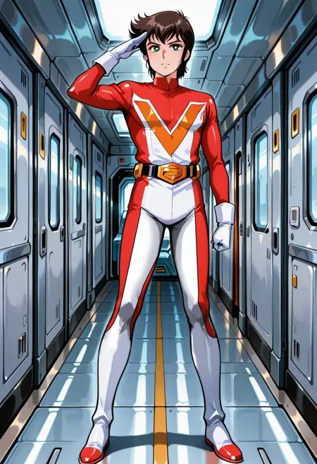 ボディスーツ:ボルテス・ユニフォーム、赤と白のボディスーツ、白手袋、ボルテス・ベルト、フルボディスーツ、
