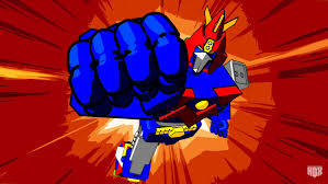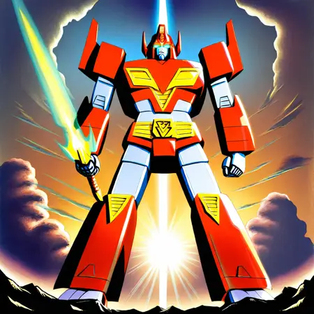 no_humans, combattler_v,combattler_robot, mecha, giant robot, glowing eyes, autobot,
