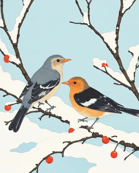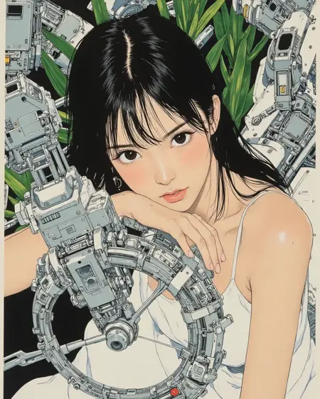 환경 묘사는 평면적인 페인팅 경향을 보이며, 주체를 더 잘 부각시키고, 세밀한 선이 두 요소를 잘 통합한다.