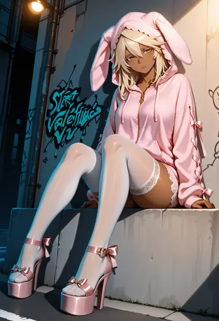 Kawaii Rabbit Lace Trim Hoodie