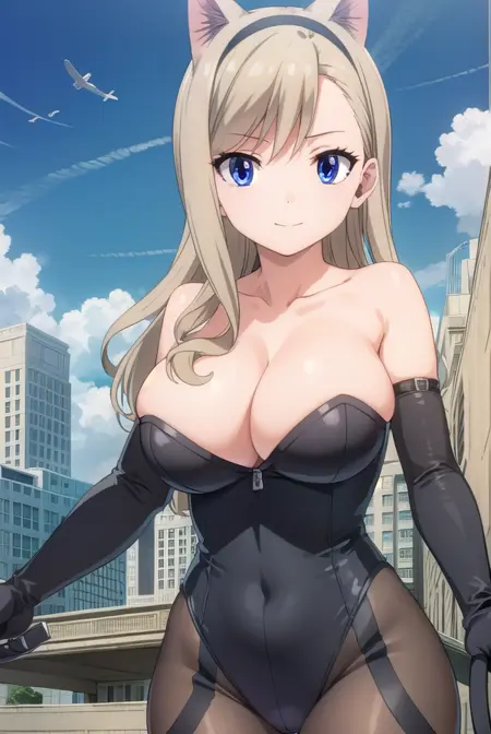 장갑, 동물 귀, 가슴 노출, 꼬리, 헤어밴드, 검은 장갑, 팔꿈치 장갑, 고양이 귀, 레오타드, 고양이 꼬리, 바디수트, 가상 동물 귀, 가상 꼬리, 검은 레오타드, 어깨 노출, 빗장뼈,