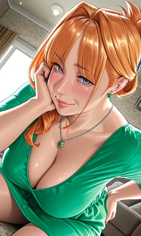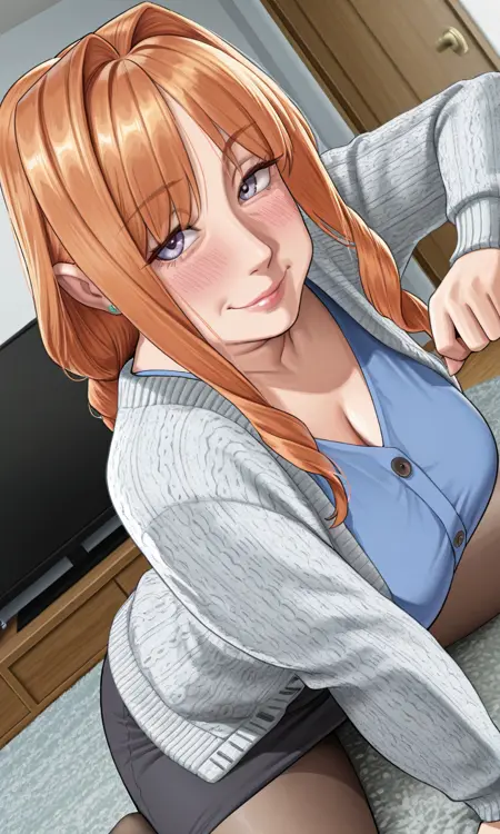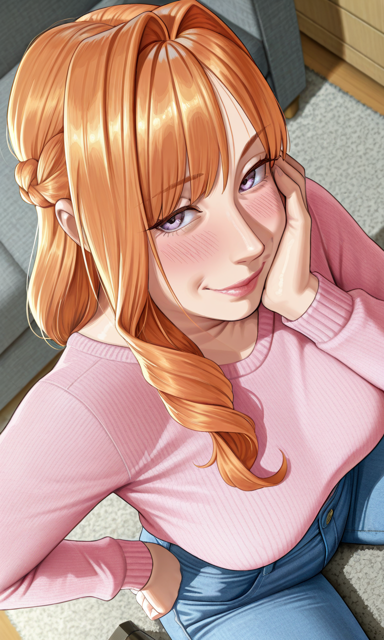 haircut1, long hair, hair intakes, orange hair, sidelocks, ponytail, braided ponytail,