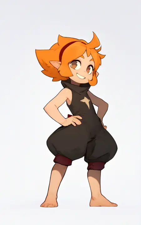 Reinforcement Tags: barefoot, orange hair, brown eyes,pointy ears,