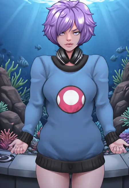 • 게임 정확한 외관을 원하면 다음을 추가하세요: 스웨터, 반바지, 목에 걸린 헤드폰, 보라색 눈