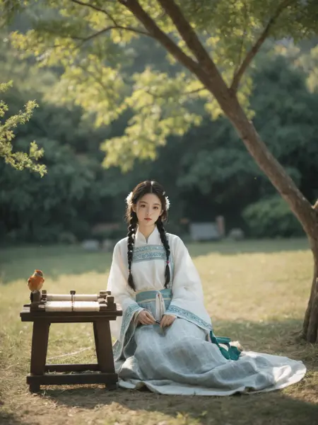 정면: 중국 전통 복장을 입은 여자,
