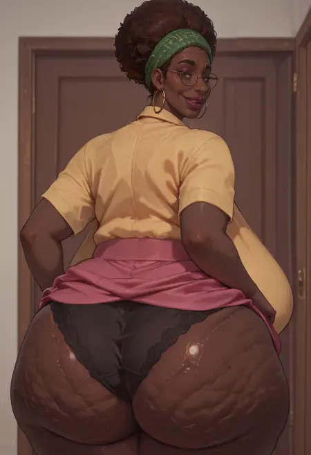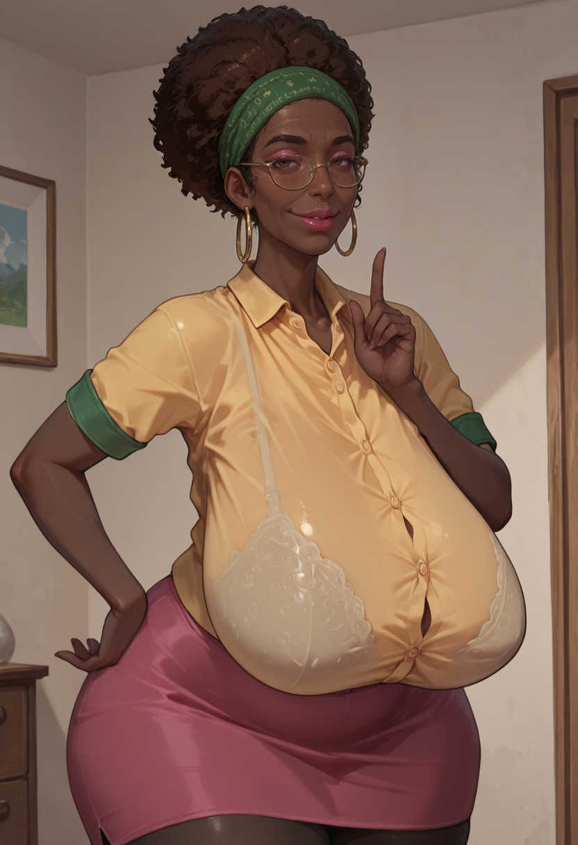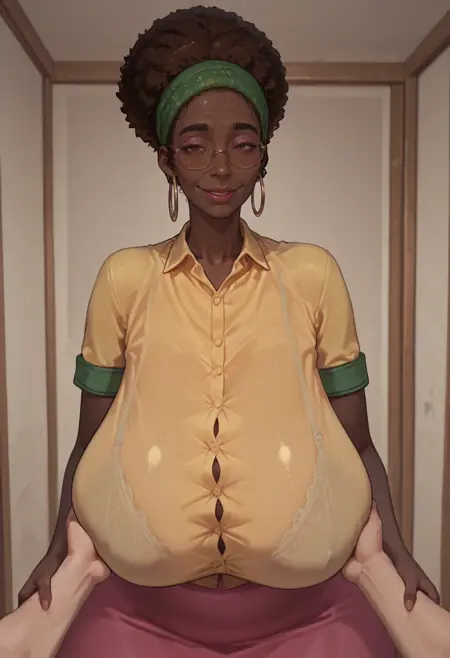 gigantic breasts, sagging breasts, plump, wide hips, thick thighs
