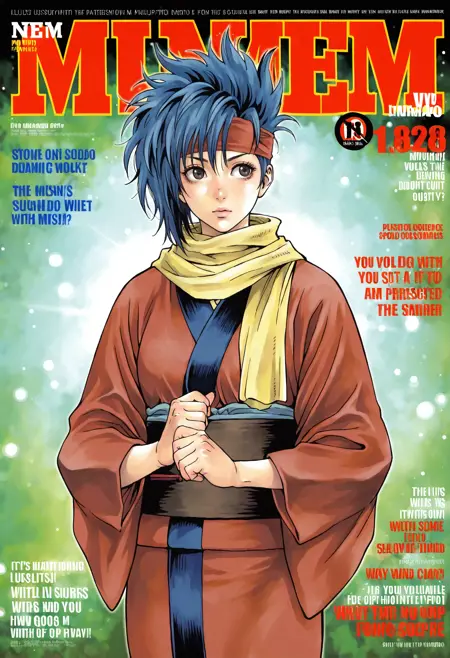 服装2: headband,scarf,japanese clothes,yellow scarf,kimono,long sleeves