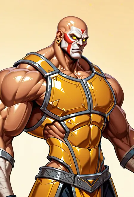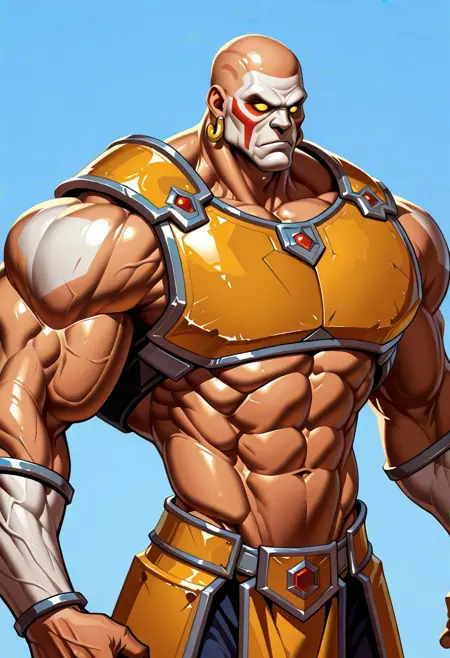 | 训练词汇 | 1boy, R3h4n_T0rch71ght, bara, completely bald, white tattoos, facepaint extremely muscular, long torso, massive pectorals, hyper defined muscles, huge biceps, tall, no eyebrows, glowing eyes, no pupils, rugged features, chiseled face, strong jawline, hypermasculine, ((6-pack abs, obliques, v-line, v-taper, iliac furrow, narrow hips, tiny waist, broad shoulders, trapezius, shredded muscles))已复制! body armor, yellow chest armor, tassets, yellow plateskirt, fully clothed, large earrings已复制! |