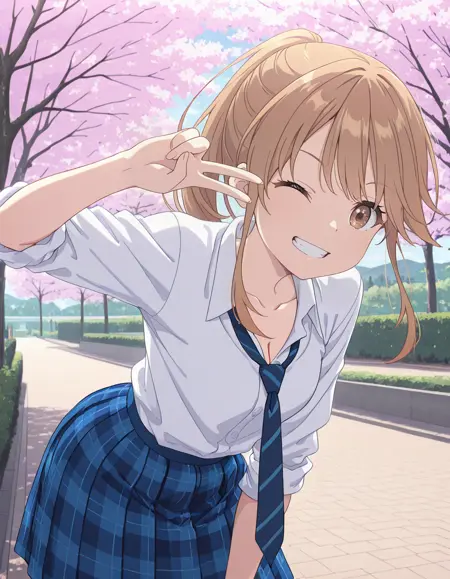 <lora:haru_aomi-chiramune_s1-ixl-anime-soralz:1>, haru aomi (chiramune),长发,棕发,马尾辫,侧发,棕色眼睛