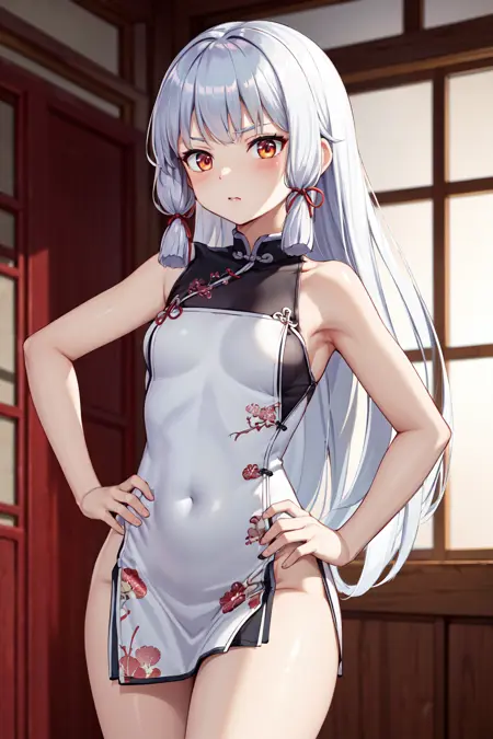 • bbmurakumo,头饰,橙色眼睛,长发,侧发,齐刘海,发带,红色领结,白色水手服,(无肩带连衣裙:1.2),白色手套,(黑色连裤袜:1.2),高跟鞋