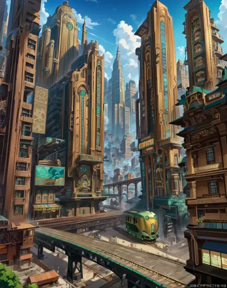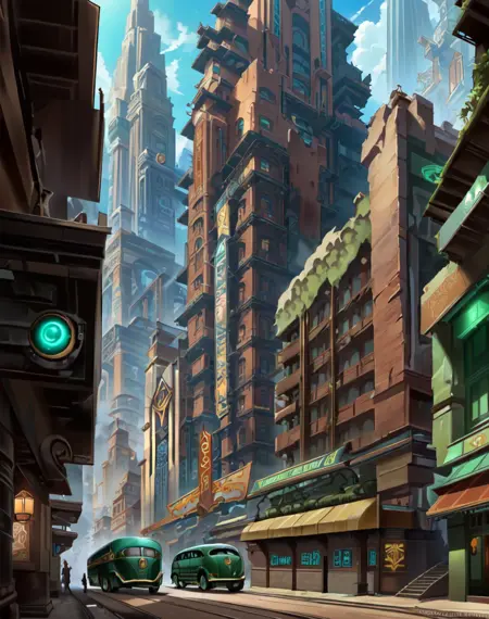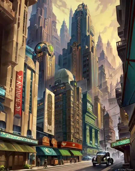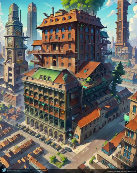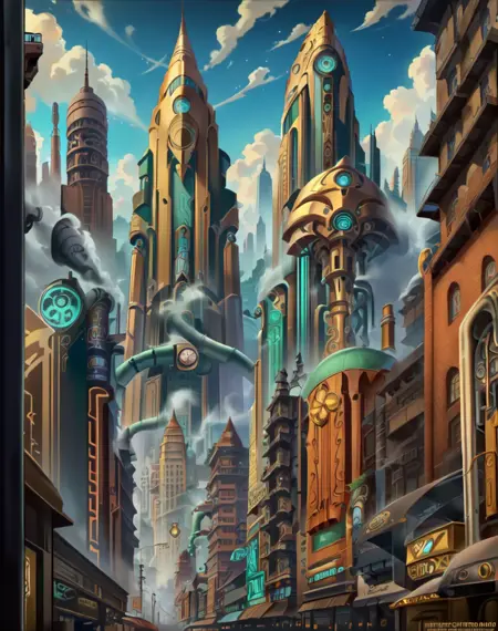 此 LoRA 的提示词为(Dieselpunk,建筑,)。请注意,虽然建筑物外部和城市中存在管道,但大多数检查点在看到“管道”提示时会生成几乎全是管道的图像。因此,请为“管道”提示添加权重。