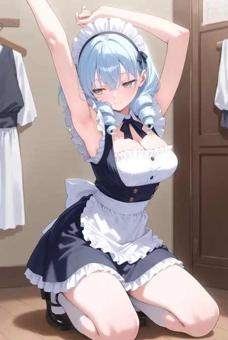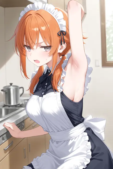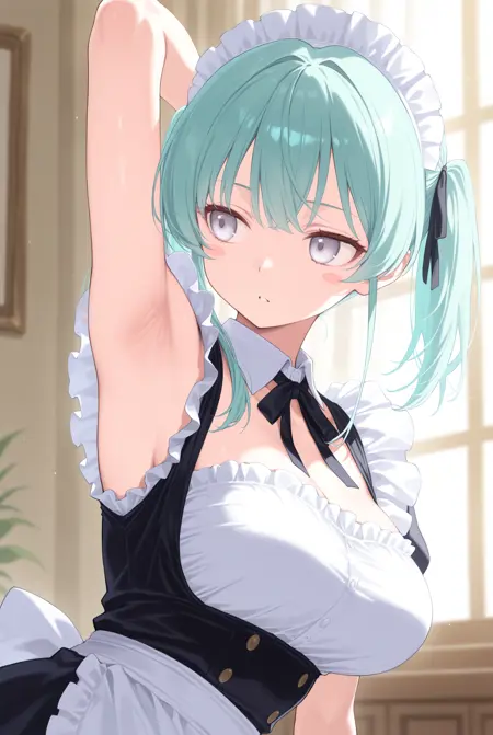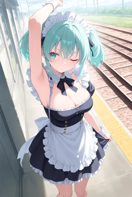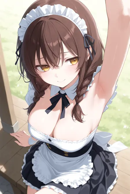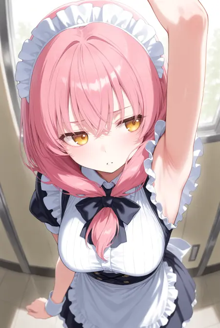 트리거만으로도 어느 정도 생성되지만, 'looking to the side', 'armpits', 'arm up', 'presenting armpit', 'sideways glance' 등을 추가하면 한 손을 들어 그 방향을 바라보는 확률이 높아집니다. 원래 이러한 프롬프트만으로도 몇 번 시도하면 그 중 하나가 나타나지만, 이 LoRA는 그 확률을 높여줍니다.