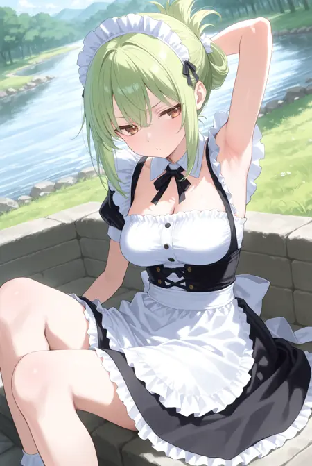 仅使用触发词也能生成一定效果,但若加入looking to the side、armpits、arm up、presenting armpit、sideways glance等词,会大幅提高模型抬手并朝该方向看的概率。虽然仅靠这些提示词偶尔也能触发该行为,但此LoRA能显著提升成功率。