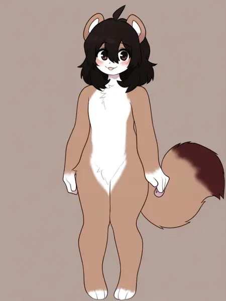 xetrio,白鼬,男性,少女风,中等长度头发,呆毛,双色毛发,黑发,头发遮住眼睛,棕色尾巴,尾巴,中等长度头发,短发,白毛,棕色上半脸部,