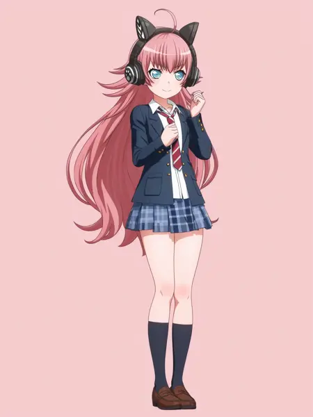 tamade chiyu,headphones,cat ear headphones,cel shading,